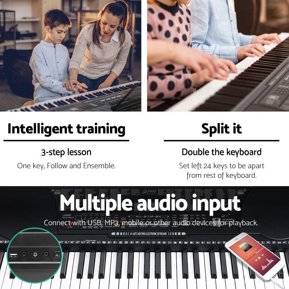 Alpha 61 Keys Electronic Piano Keyboard Digital Electric w/ Stand Lighted Black