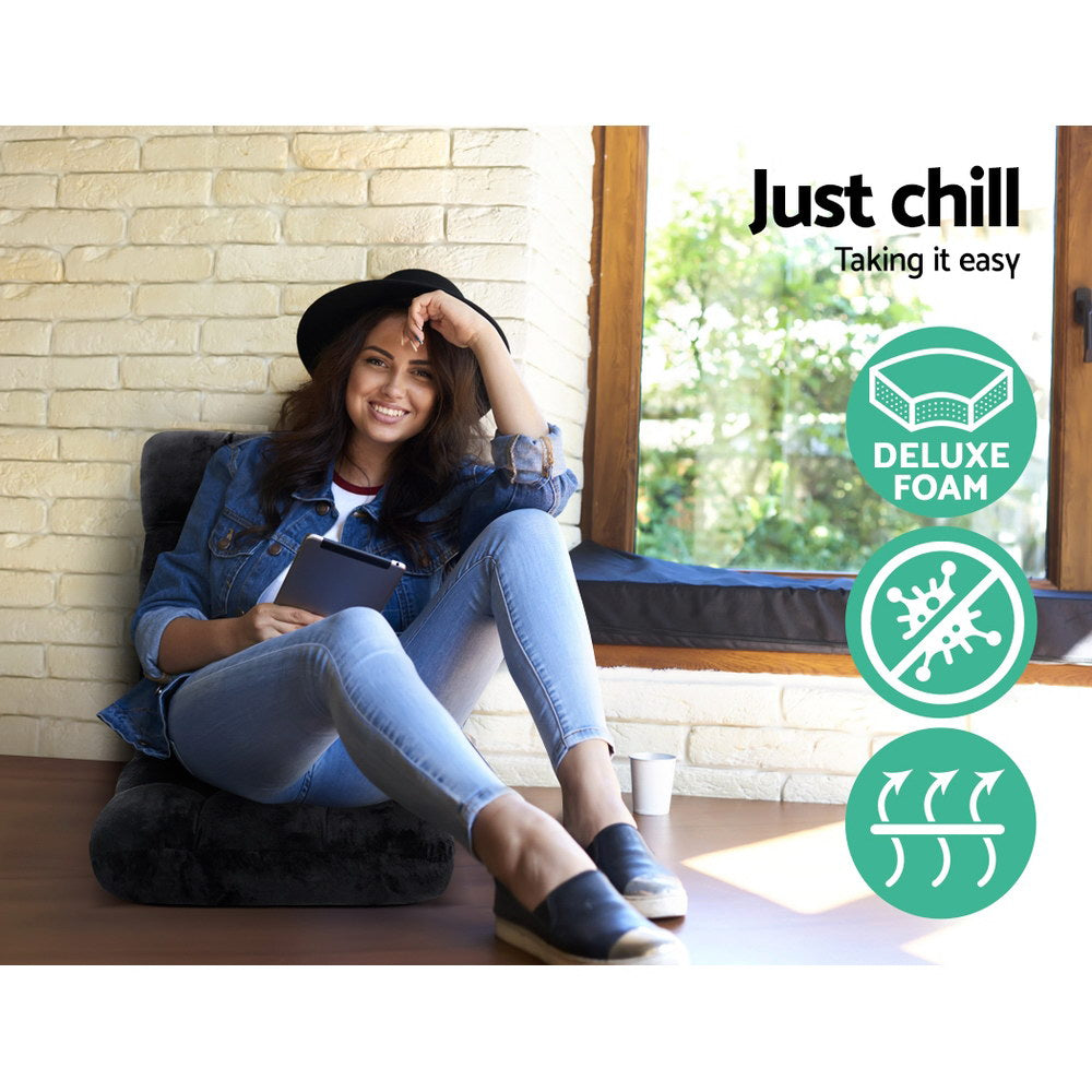 Artiss Lounge Sofa Bed Flannel Fabric Black