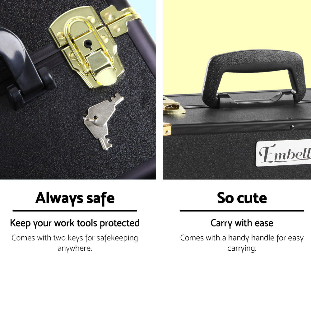 Embellir Portable Cosmetic Beauty Makeup Case - Black & Gold