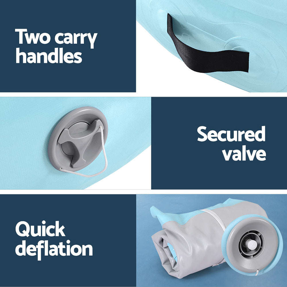 For hours of jumping, fighting and tumbling fun, the Everfit Air Track is a great addition to your home gym. Perfect for gymnastics, martial arts, yoga, cheerleading and more, the 1m round air track is a versatile and essential tool for your training regime. Crafted with drop-stitched 1000-denier double-wall fabric, the Everfit air track ensures durability and stability during intense workouts. Softer than foam and designed for robust use, the air track won't twist or bend and helps to significantly reduce impact. Its anti-slip and wear-resistant surface provides a secure grip, allowing you to perform your moves with confidence. The integrated valve system allows for quick and easy inflation and deflation, while the compact roll-up design makes storage and transport a breeze. With two convenient carrying handles and a repair kit included, the Everfit 1m round Air Track is the perfect choice for athletes seeking a reliable and portable training solution.