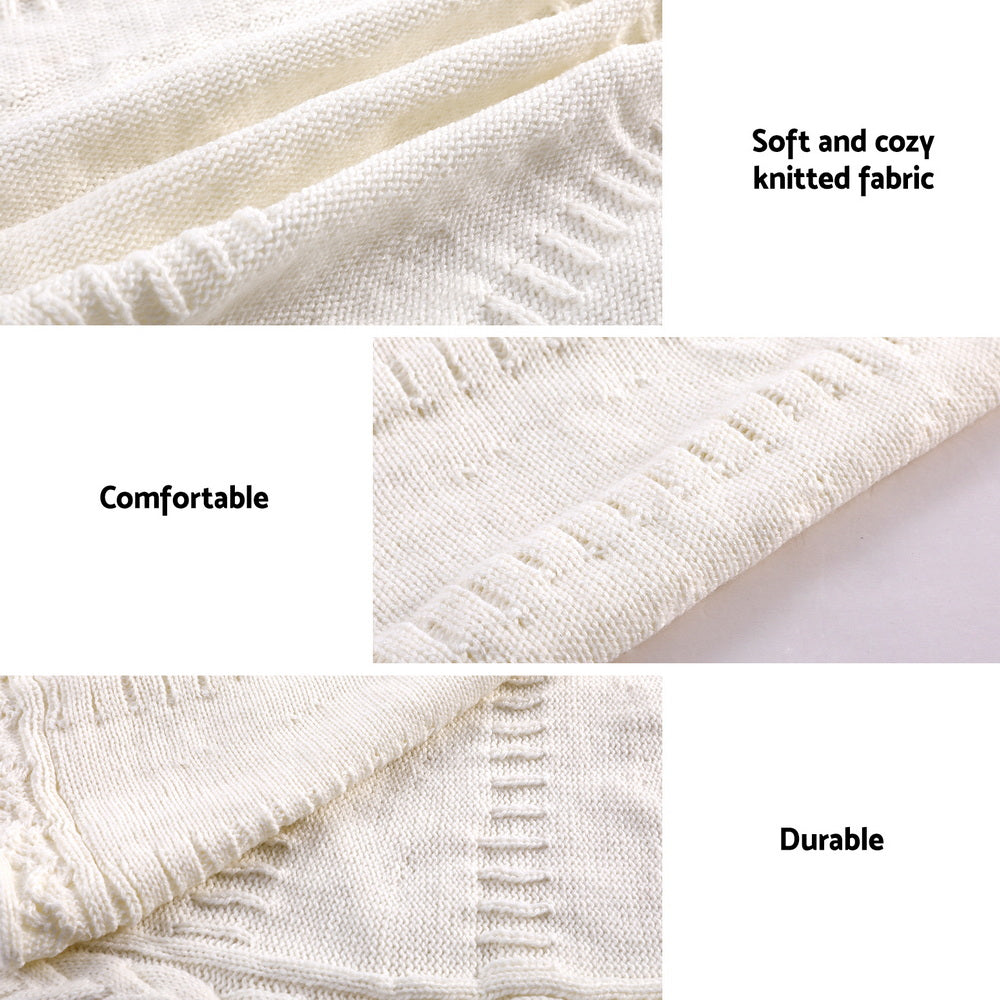 Jingle Jollys Christmas Tree Skirt 90cm Knitted Fabric Xmas Ornament Decor Beige
