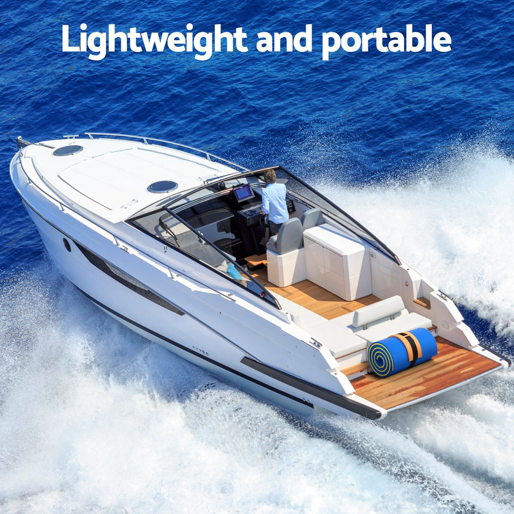 You do not have to perform miracles to walk on water, you just need our Weisshorn Floating Mat. The mat is made from 3.5cm thick three-layer XPE foam composite with super-strong buoyancy that keeps it stable and safe for you to perform various activities while floating on water. Anything is possible, from playing games and relaxing, to exercising or even fishing. Made from durable material that is also non-absorbent, not easily deformed, UV-resistant, and tear-resistant due to the mesh interlayer, you can be assured of aquatic fun with our mat. The mat is also reversible, with bright colours on both sides. Best of all, it is lightweight and can easily be rolled up using the included straps. So store it in your car and take it with you wherever it is needed: to the beach, pool, water park or even the hot springs.